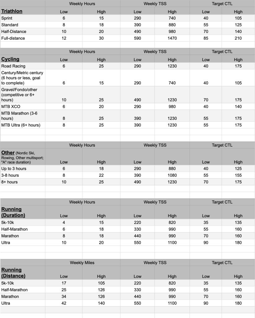 https://help.trainingpeaks.com/hc/en-us/articles/230904648-Suggested-Weekly-TSS-and-Target-CTL
