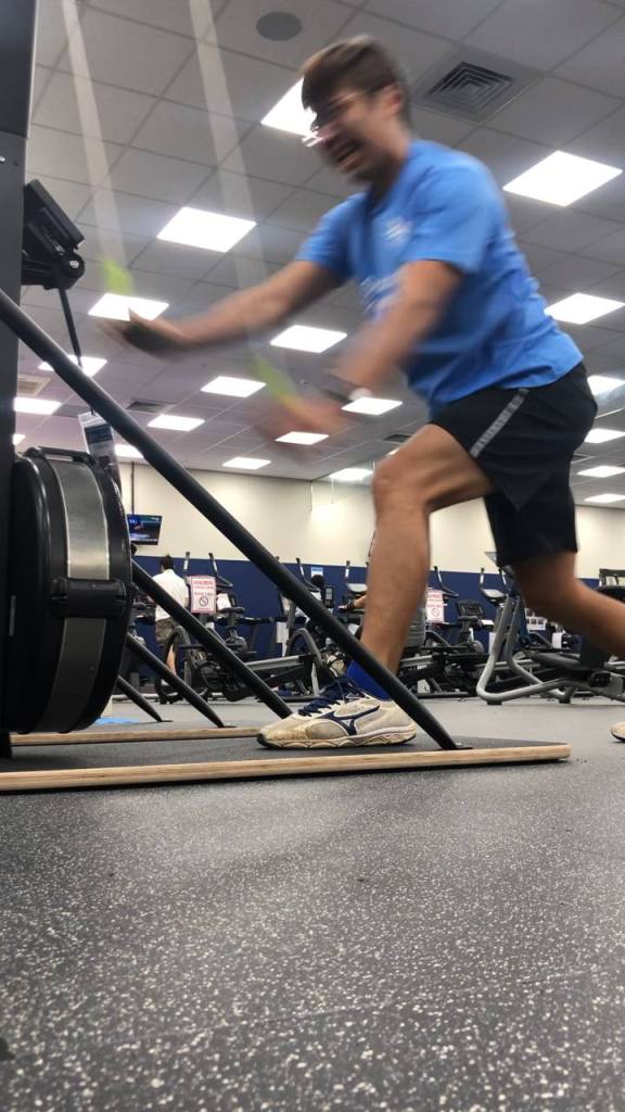 但划船是一項很美妙的運動,而且要划的好強度非常高。現在沒有龍舟可以練,我手上又沒有輕艇還是激流艇可用。要怎麼樣才能模擬龍舟划槳的動作,達到訓練的效果呢?第一個首選其實是還算可見得滑雪機,但有滑雪機的運動中心也都暫時不開放,這條蹊徑也被關了起來。之前訓練有些剪影,請參考。