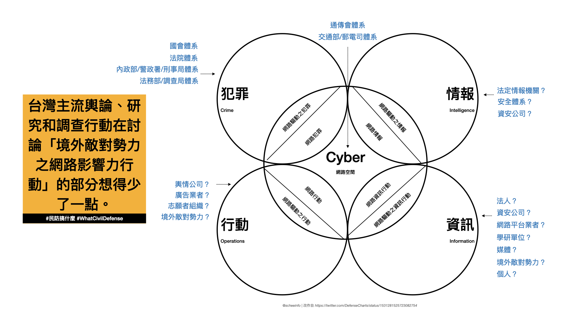 透過這個表格,我們可以多了解使用「公務身份」和「私人帳號」在「公務時間」進行「網路影響力行動」 (Influence Operation) 的複雜度,以及這些困窘的管理問題要如何解決。如果不是進行影響力行動,只是個人發發牢騷,也可以知道要如何看待,要怎麼從政策面將這種狀況(例如上班發文到處挑釁)慢慢根除。
